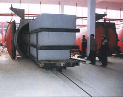 加气混凝土生产设备的选型和数量根据工艺设计方案而确定,由于加气混凝土生产工艺不同,形成体现工艺特点的不同装备技术。这些技术特点,都体现在切割机组上。它涉及到浇注形式、模具、小车构造、坯体的运送、脱模、切割、码架、进釜的方式等设备都大同小异。
